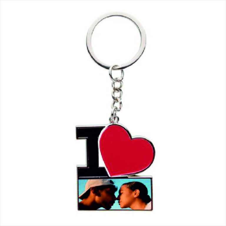 Breloc metalic I Love personalizat cu poza