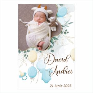 • Adaugati poza si in casuta text nume copil, data nasterii si culoarea saculetului.