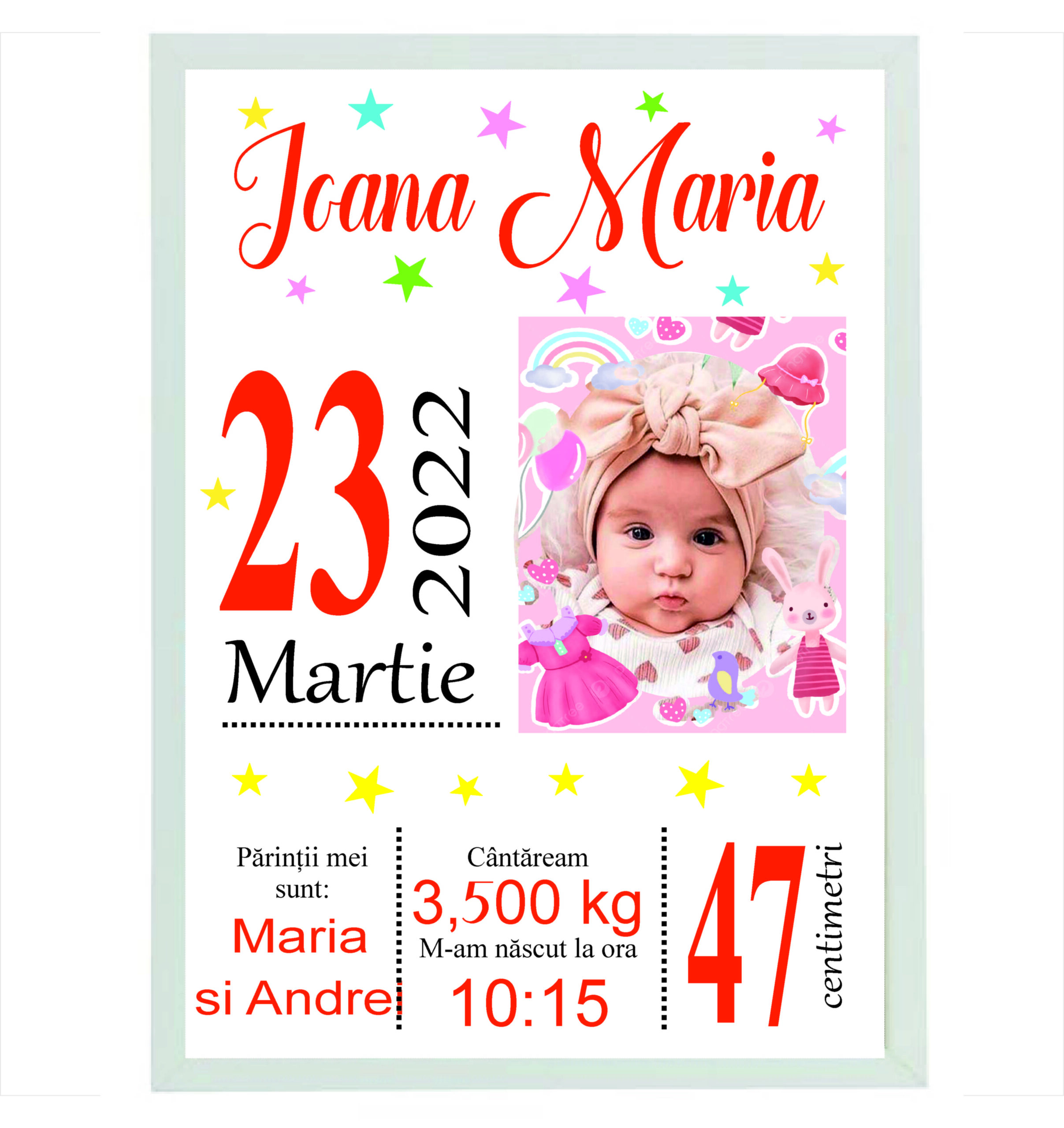 Rama foto personalizata BOTEZ/MOȚ -Nasterea mea